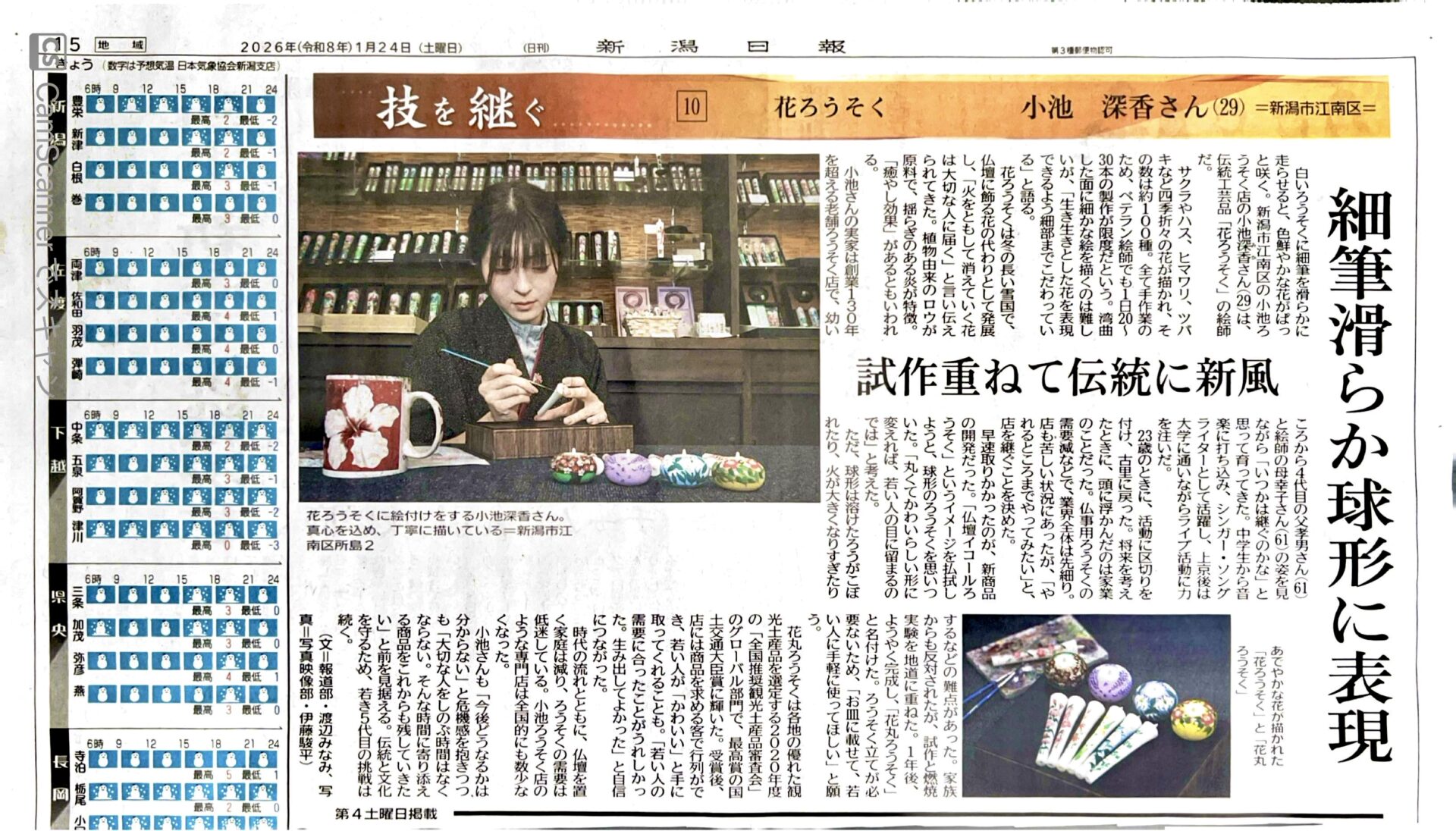 【<新潟日報>掲載】1月24日㈯「技を継ぐ」~細筆滑らか球形に表現~